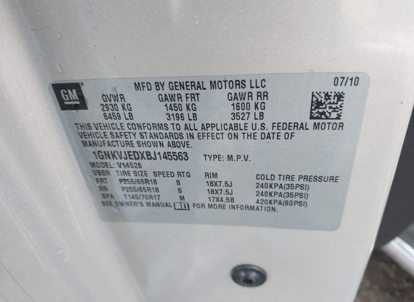 - VIN: 1GNKVJEDXBJ145563