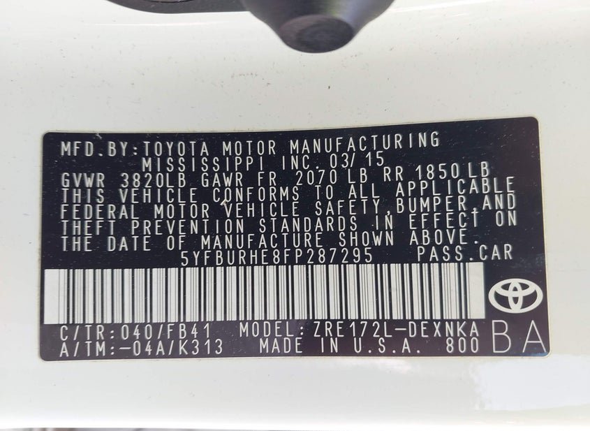 - VIN: 5YFBURHE8FP287295