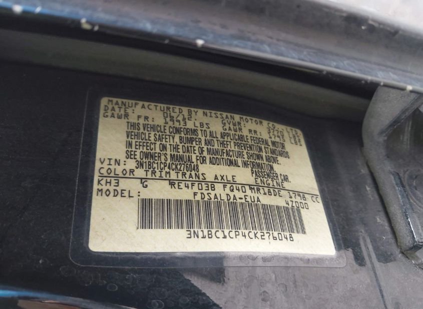 - VIN: 3N1BC1CP4CK276048