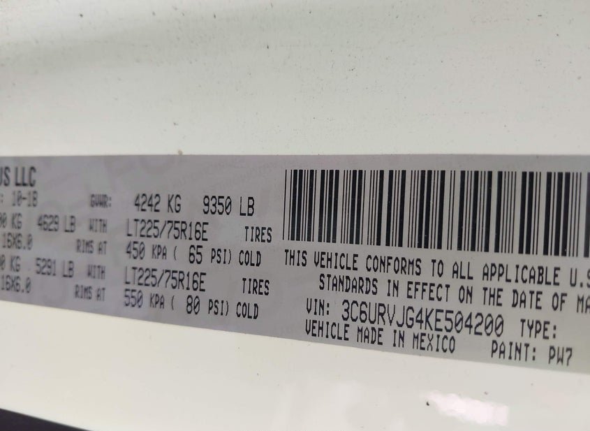 - VIN: 3C6URVJG4KE504200