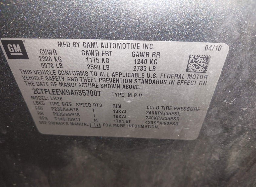 - VIN: 2CTFLEEW9A6357007