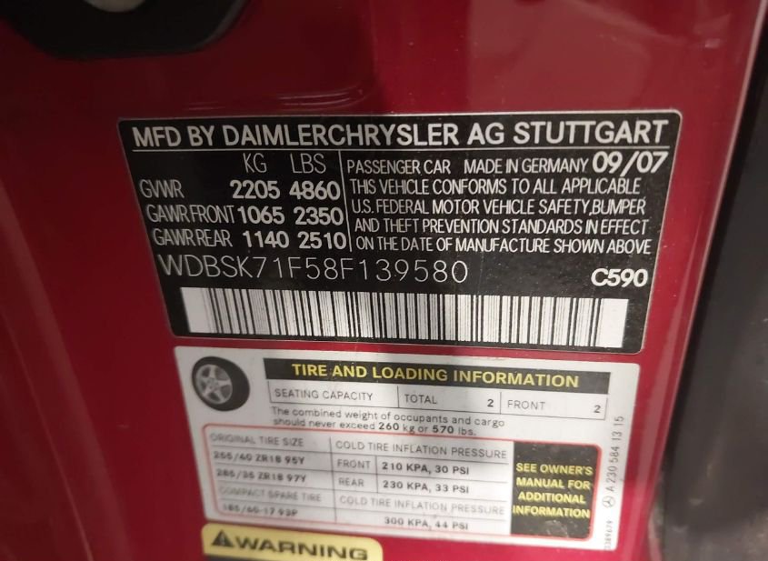 - VIN: WDBSK71F58F139580