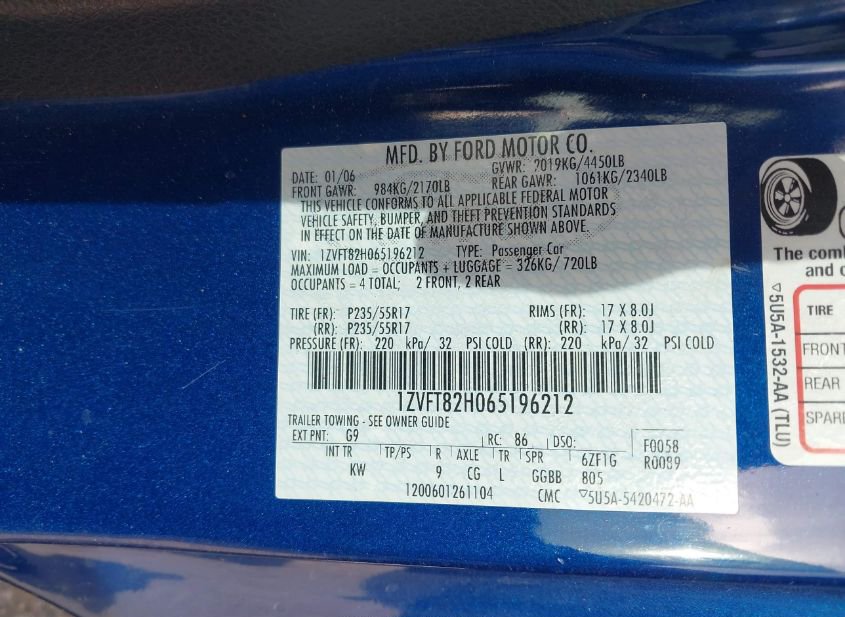 - VIN: 1ZVFT82H065196212