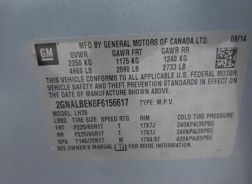 - VIN: 2GNALBEK6F6156617