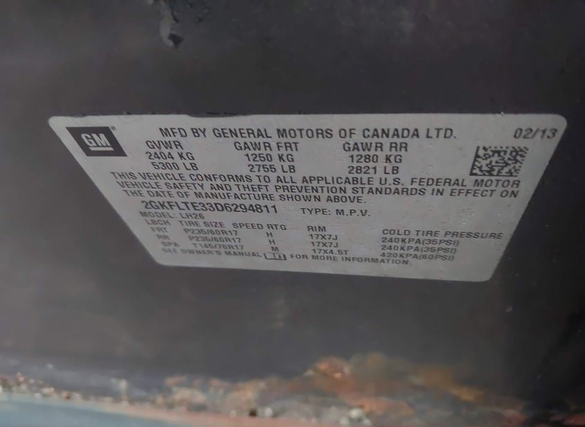 - VIN: 2GKFLTE33D6294811
