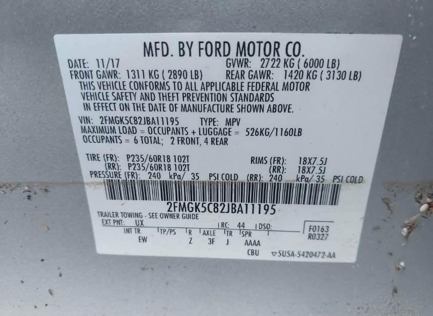 - VIN: 2FMGK5C82JBA11195
