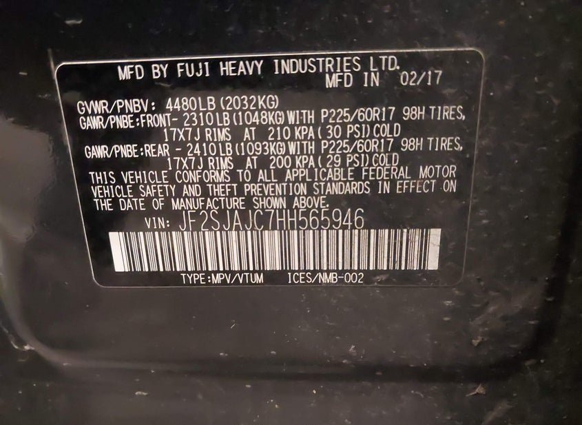 - VIN: JF2SJAJC7HH565946
