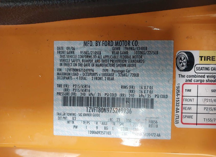 - VIN: 1ZVFT80N975249936