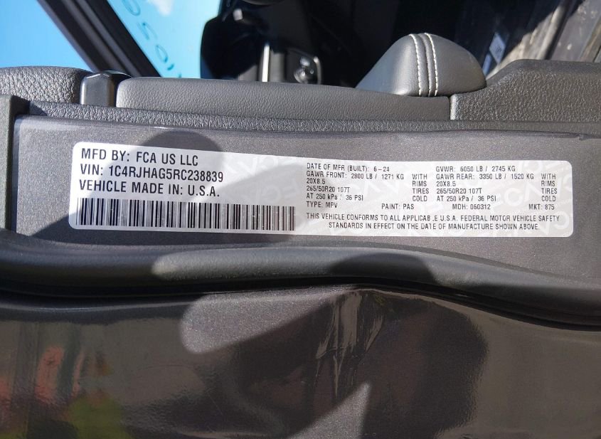 - VIN: 1C4RJHAG5RC238839