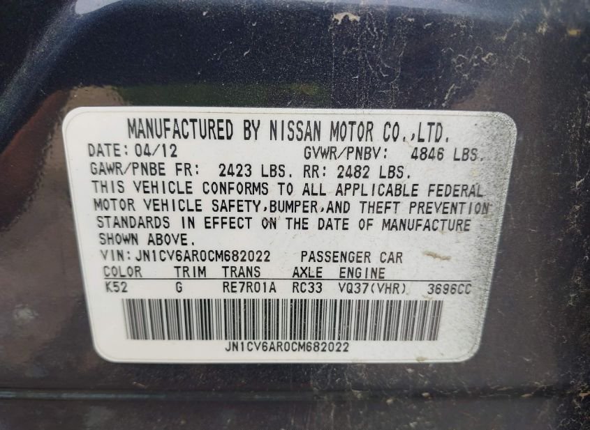 - VIN: JN1CV6AR0CM682022