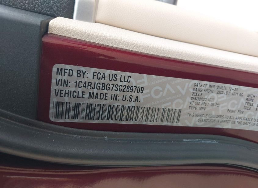 - VIN: 1C4RJGBG7SC289709