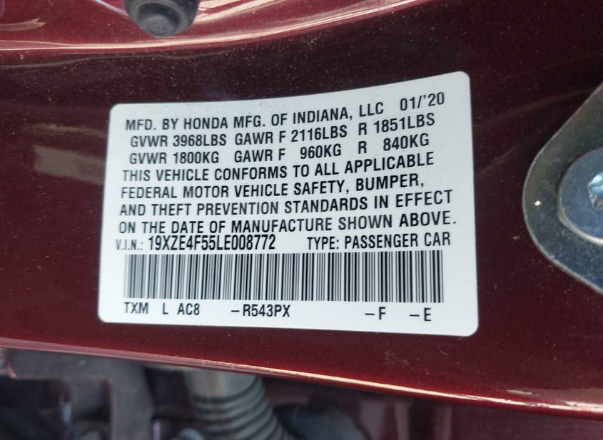 - VIN: 19XZE4F55LE008772