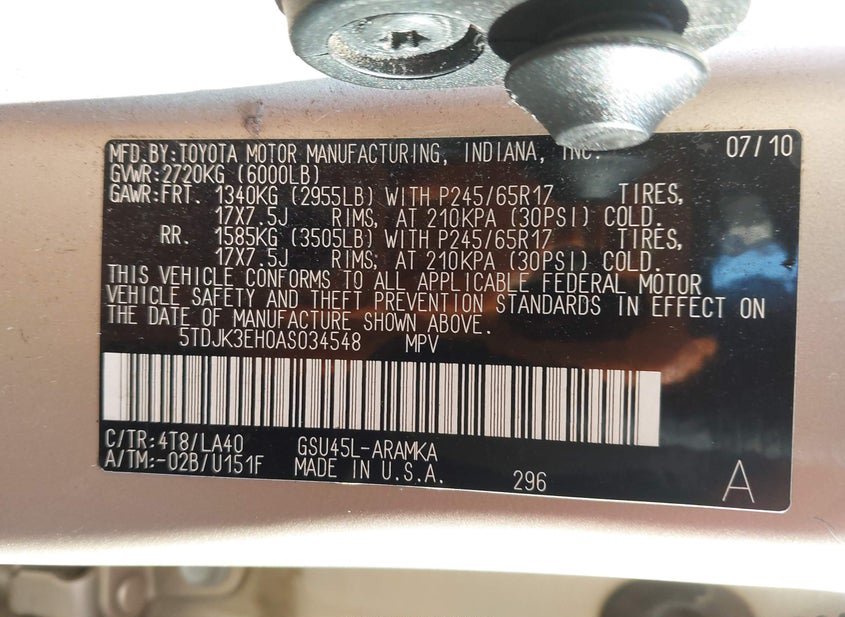 - VIN: 5TDJK3EH0AS034548