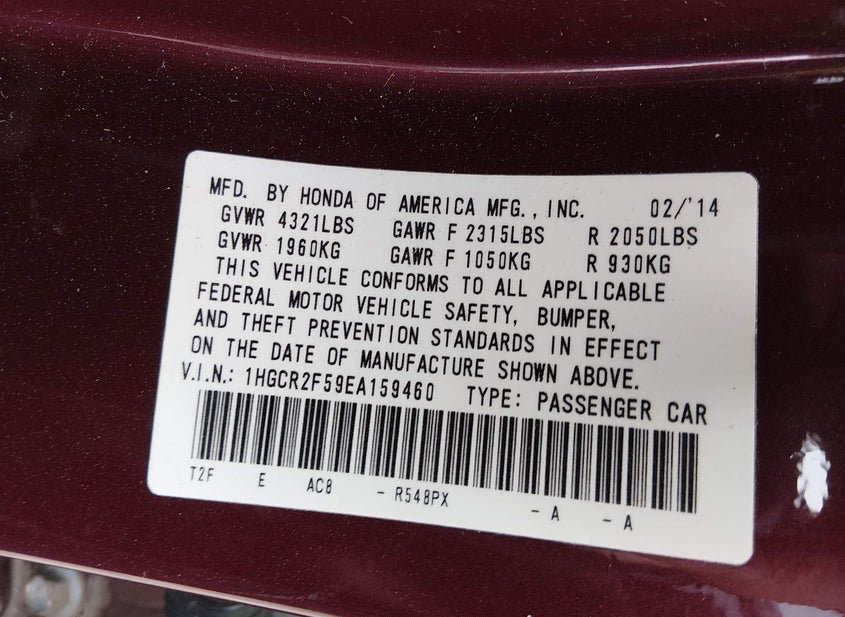 - VIN: 1HGCR2F59EA159460