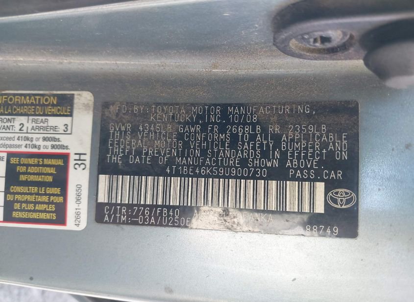 2009 TOYOTA CAMRY LE