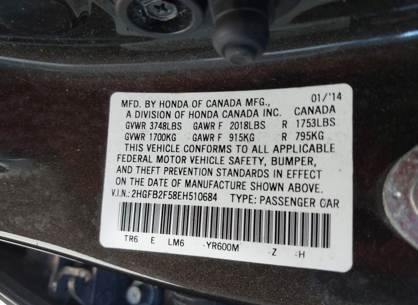 - VIN: 2HGFB2F58EH510684