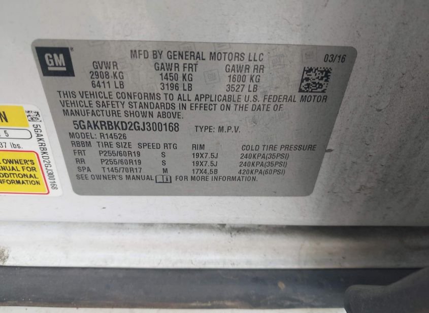 - VIN: 5GAKRBKD2GJ300168