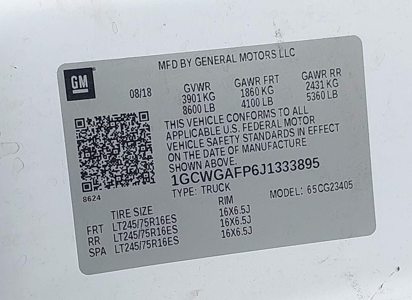- VIN: 1GCWGAFP6J1333895