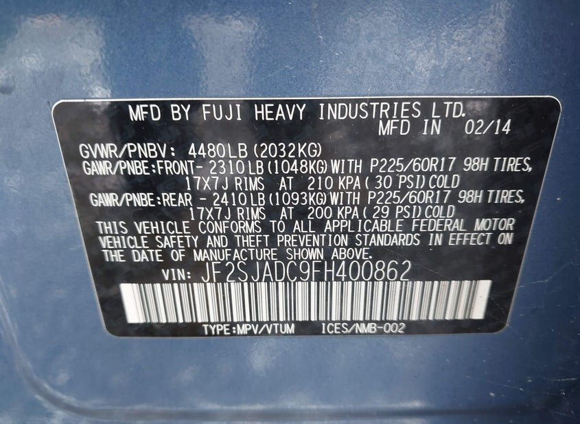 - VIN: JF2SJADC9FH400862