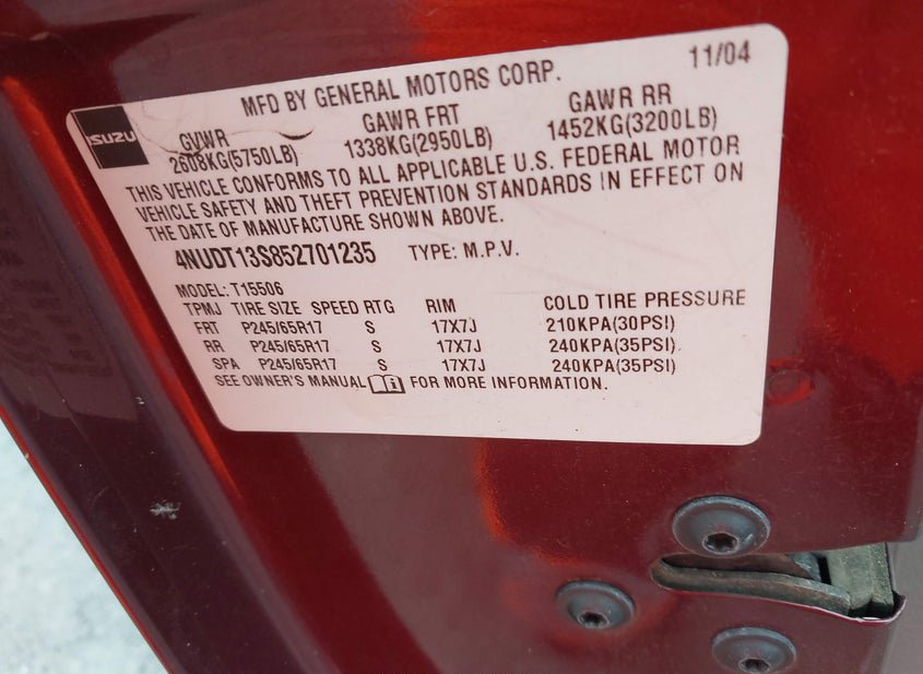- Название лота: 2005 ISUZU ASCENDER S