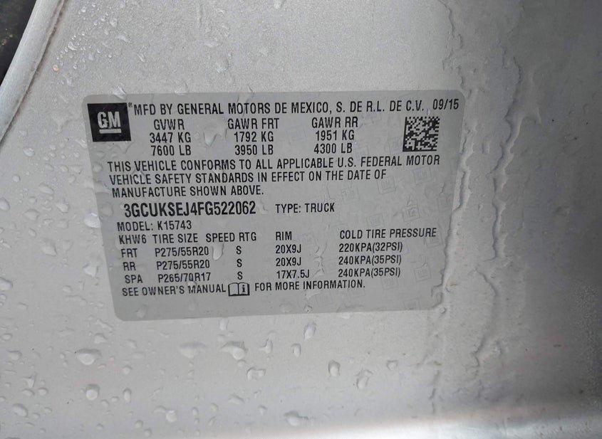 - VIN: 3GCUKSEJ4FG522062