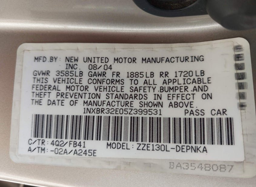 - VIN: 1NXBR32E05Z399531