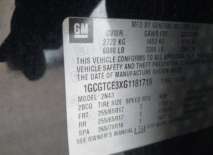 - VIN: 1GCGTCE3XG1181719