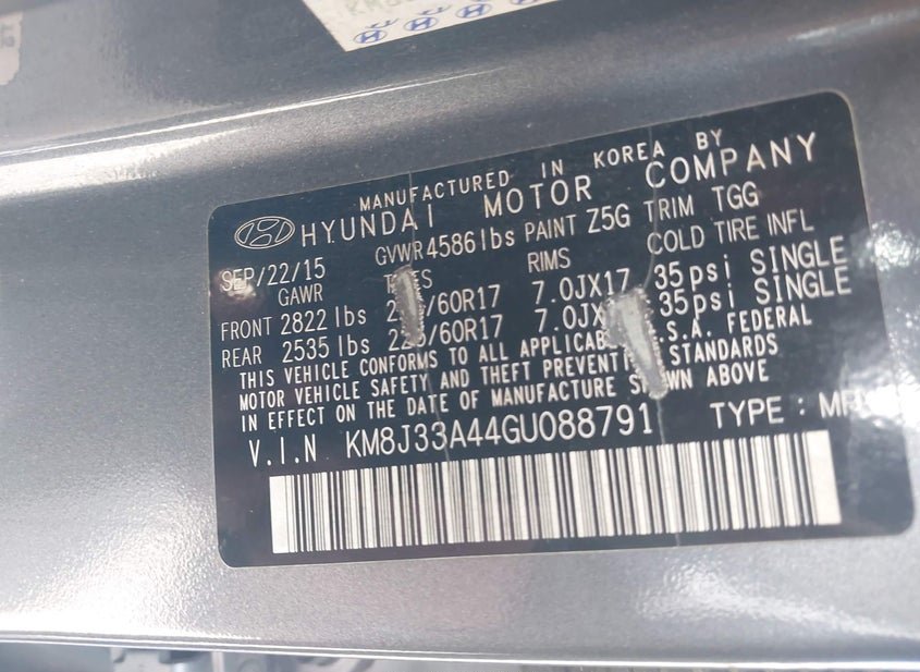 - VIN: KM8J33A44GU088791