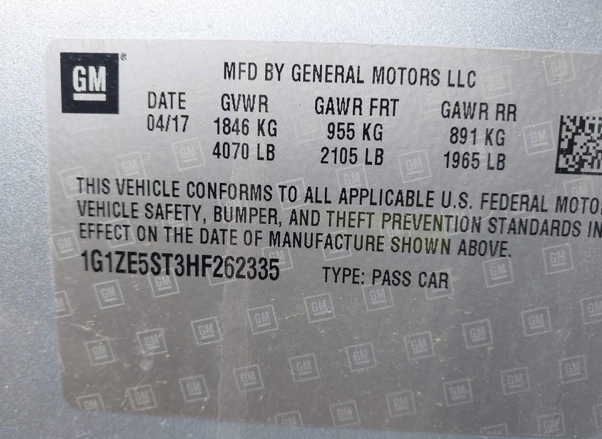 - VIN: 1G1ZE5ST3HF262335