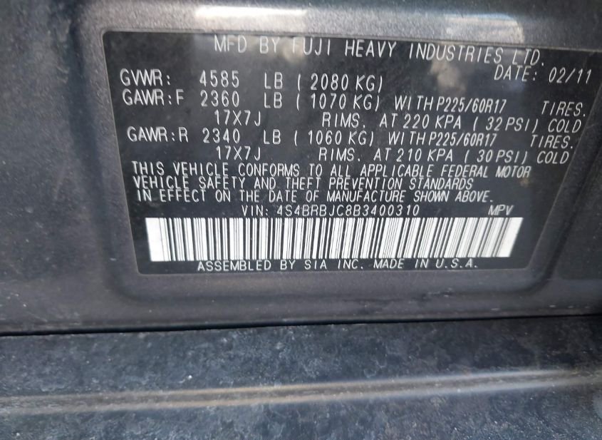 - VIN: 4S4BRBJC8B3400310