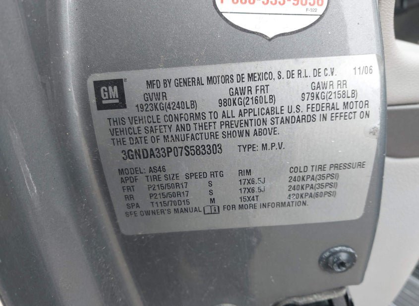 - VIN: 3GNDA33P07S583303