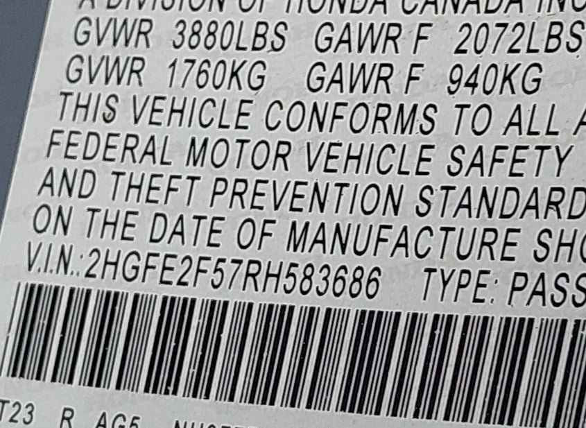 - VIN: 2HGFE2F57RH583686