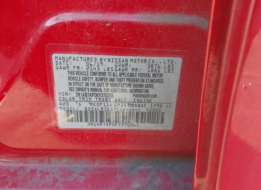 - VIN: 3N1AB7AP0KY370265