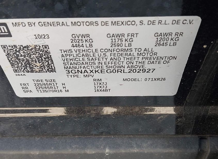 - VIN: 3GNAXKEG0RL202927