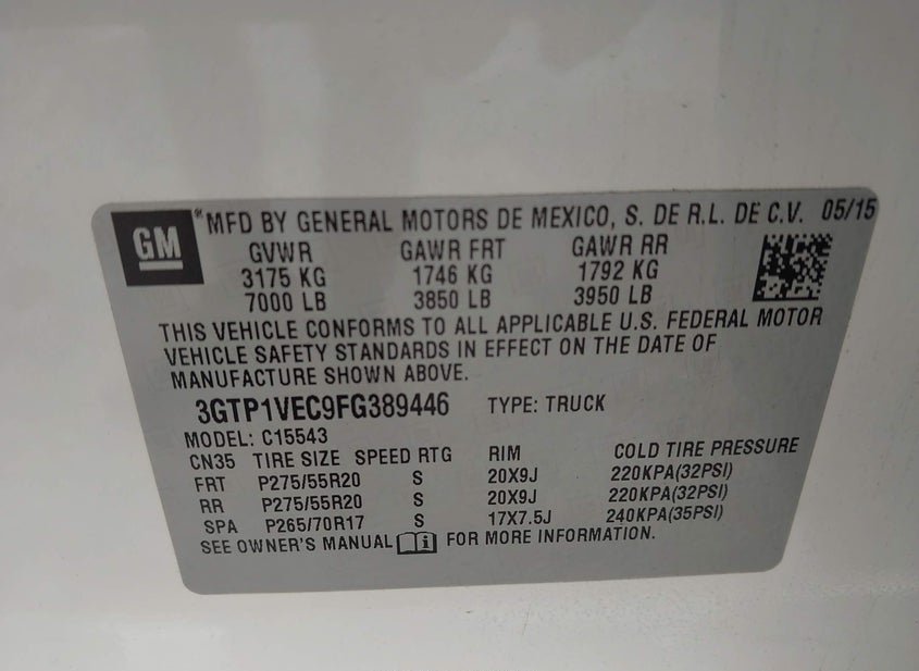 - VIN: 3GTP1VEC9FG389446