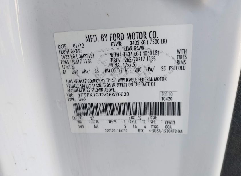 - VIN: 1FTFX1CT3CFA70630