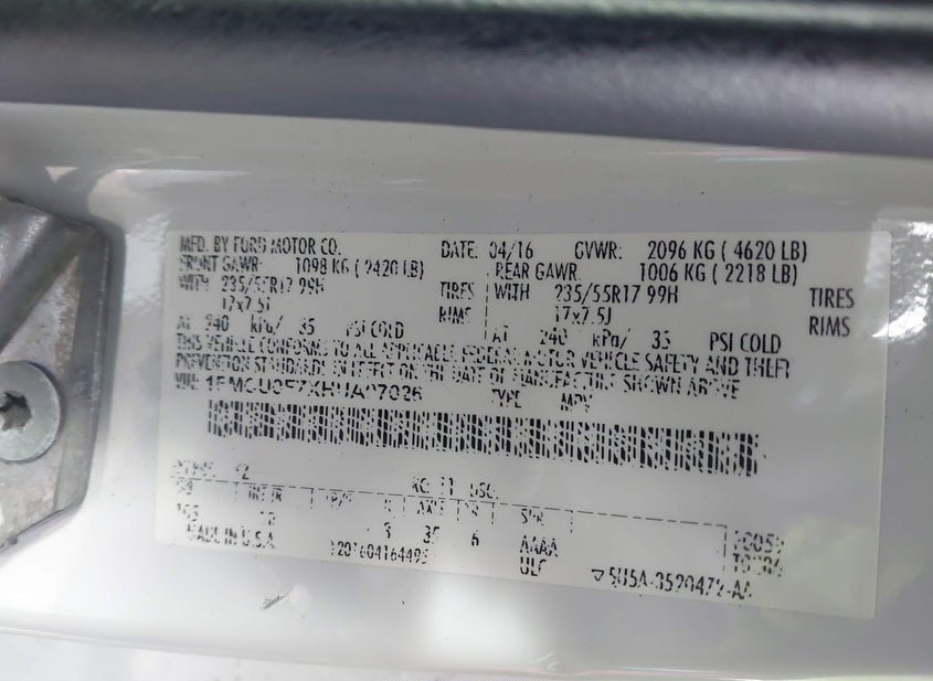- VIN: 1FMCU0F7XHUA07026