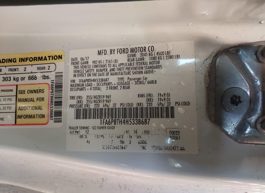 - VIN: 1FA6P8TH4H5338687