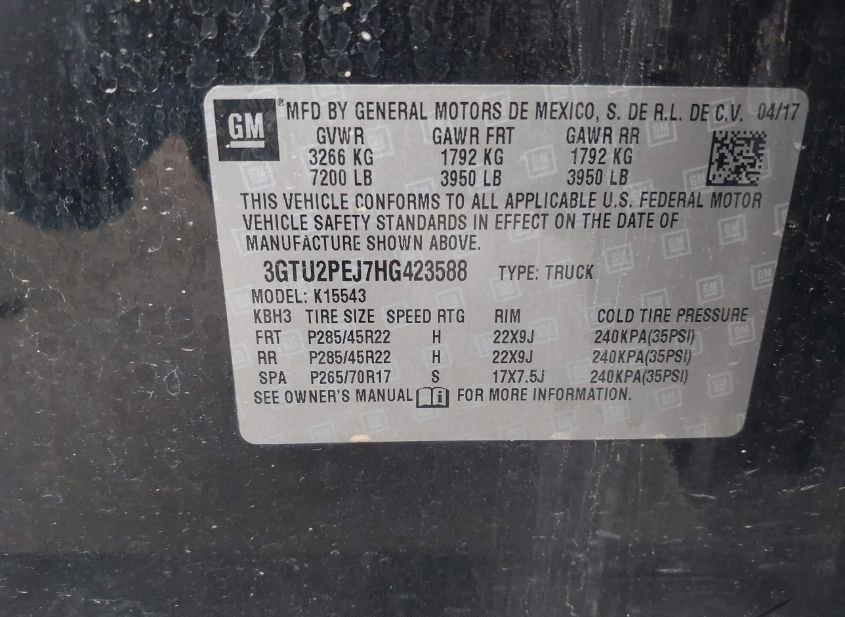 - VIN: 3GTU2PEJ7HG423588