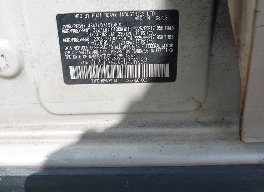 - VIN: JF2GPAKCXE8206962