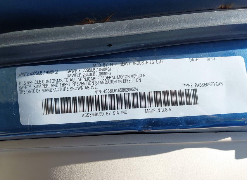 - VIN: 4S3BL616586209524