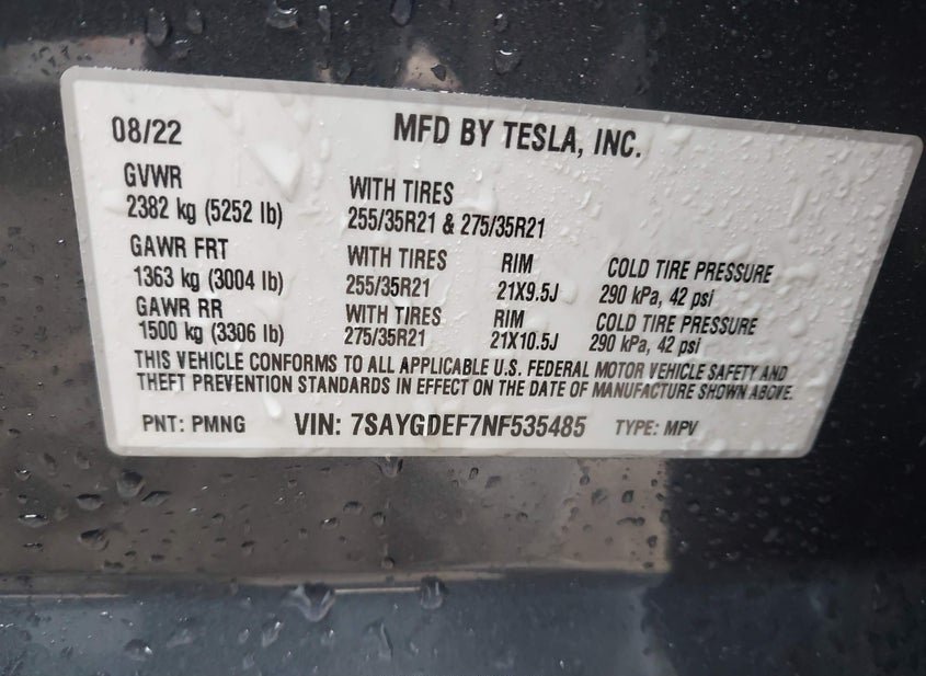 - VIN: 7SAYGDEF7NF535485