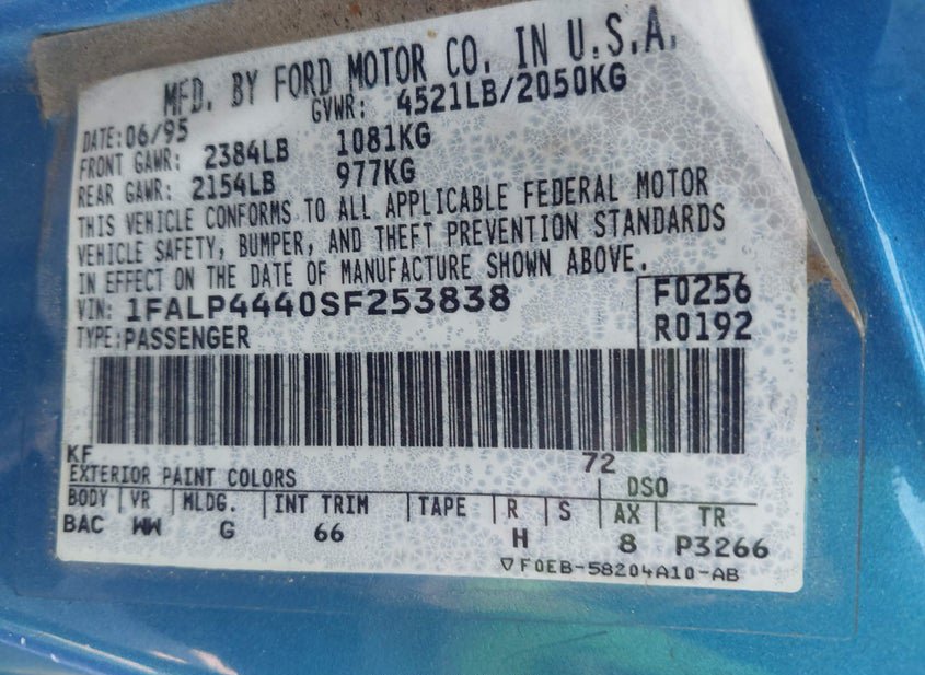 - VIN: 1FALP4440SF253838