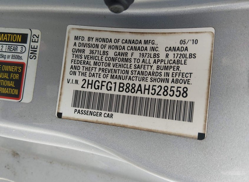 - VIN: 2HGFG1B88AH528558