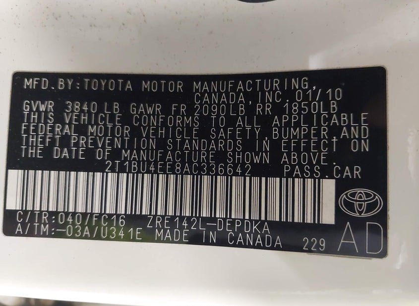 - VIN: 2T1BU4EE8AC336642