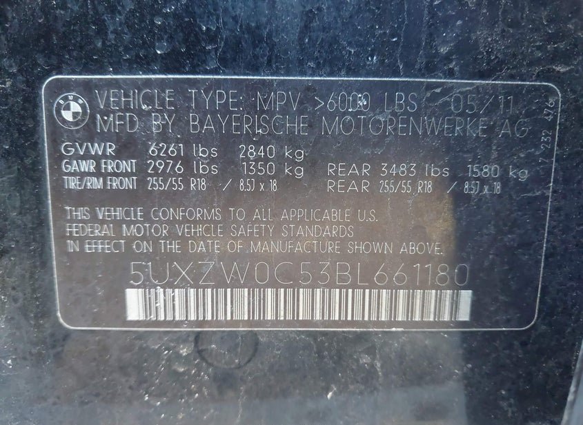 - VIN: 5UXZW0C53BL661180