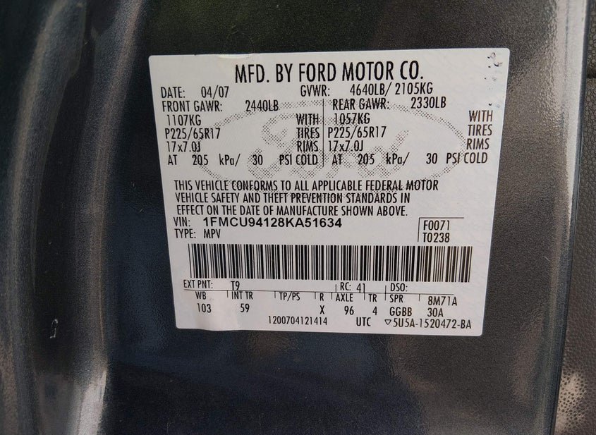 - VIN: 1FMCU94128KA51634