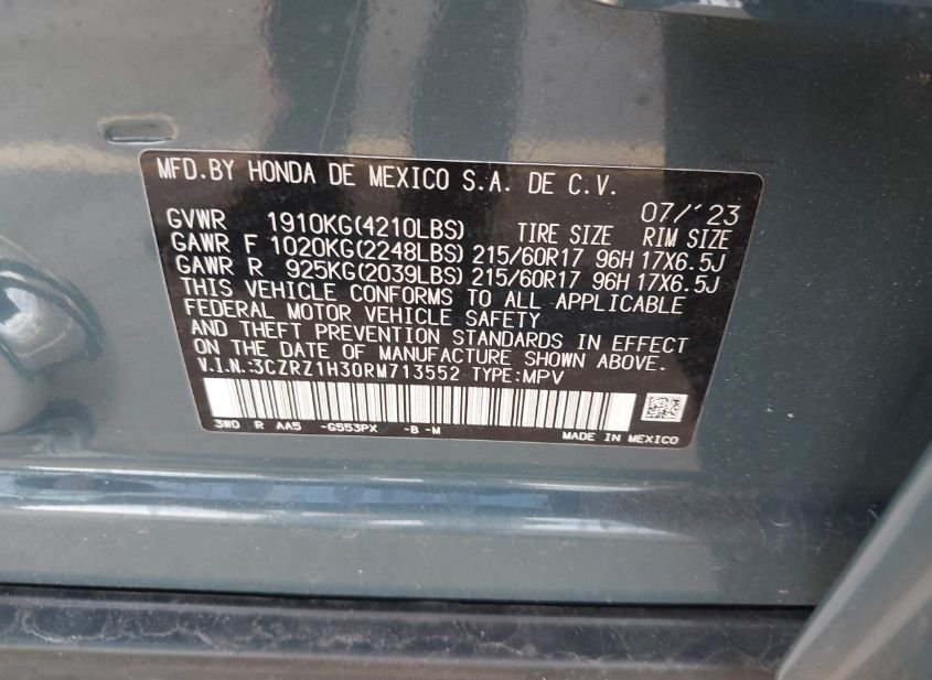 - VIN: 3CZRZ1H30RM713552