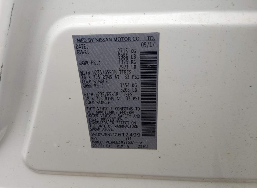 - VIN: 5N1DR2MN1JC612499