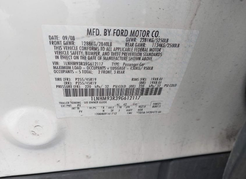 - VIN: 1LNHM93R39G612117